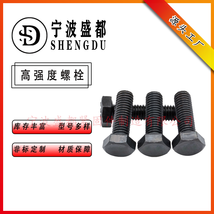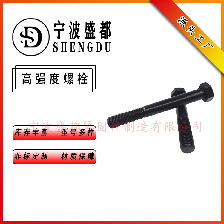 宁波盛都紧固件科技有限公司,专注钢结构系列和网架螺栓等高强度螺栓、螺母,已通过ISO9001质量体系认证。公司主要设备——本公司拥有螺栓和螺母两大生产部门及专业的异型产品研发人员,现有先进的生产设备大型网带炉,多台多工位冷墩机,数控车床40余台。公司产品质量——公司自开创以来,就把产品质量作为企业的生命线,引进先进的生产设备和工艺,聘用高级技术人才,工人培训上岗,道道共序严把质量关。产品经过国家产品质量检测中心、SGS通标标准技术服务有限公司等权威部门检测。产品应用领域——广泛用于建筑、交通、电力、军工等多行业!
