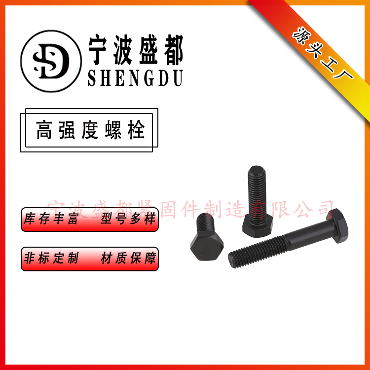 宁波盛都紧固件科技有限公司,专注钢结构系列和网架螺栓等高强度螺栓、螺母,已通过ISO9001质量体系认证。公司主要设备——本公司拥有螺栓和螺母两大生产部门及专业的异型产品研发人员,现有先进的生产设备大型网带炉,多台多工位冷墩机,数控车床40余台。公司产品质量——公司自开创以来,就把产品质量作为企业的生命线,引进先进的生产设备和工艺,聘用高级技术人才,工人培训上岗,道道共序严把质量关。产品经过国家产品质量检测中心、SGS通标标准技术服务有限公司等权威部门检测。产品应用领域——广泛用于建筑、交通、电力、军工等多行业!